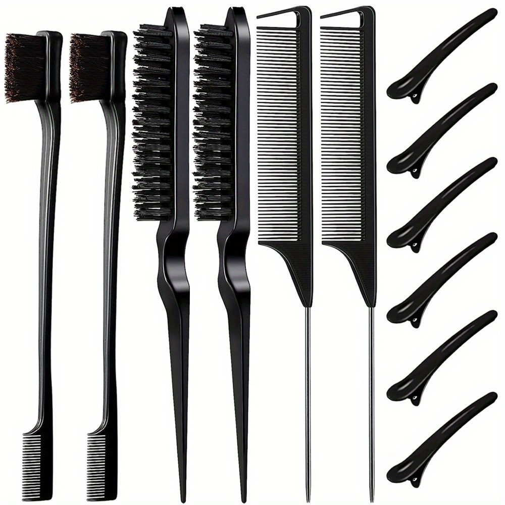 12 pieces Salon-Grade Nylon Teasing Brush Set with Double-Sided Design and Duckbill Clips for Smooth and Controlled Hair Styling