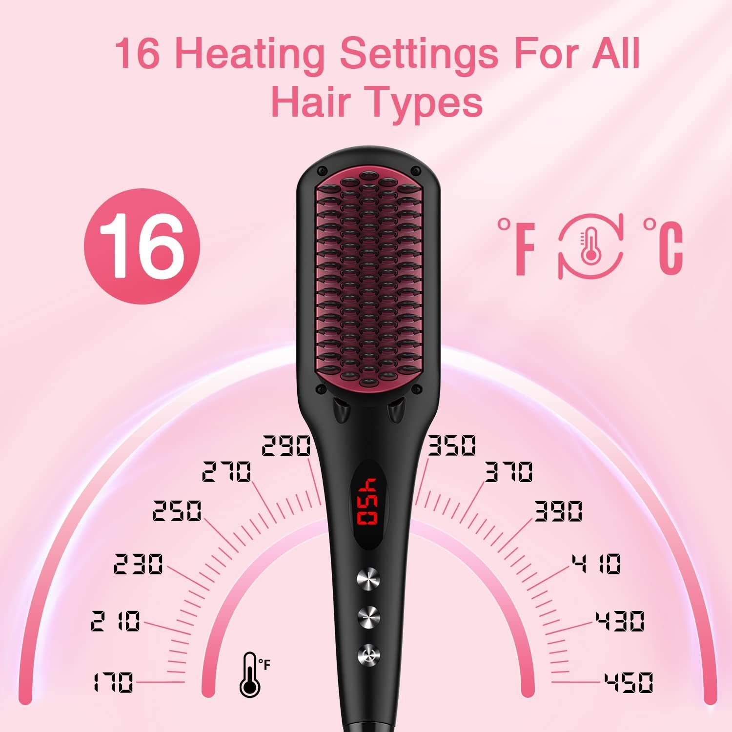 4.SUITABLE FOR ALL HAIR TYPES: Thin, fine, or bleached hair? Or perhaps you’re looking for a straightening brush for thick hair? With 16 temperature settings, anyone can turn dull hair into beautiful, voluminous locks