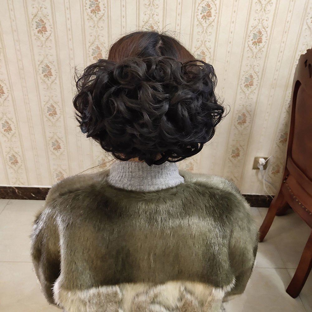 Messy Curly Dish Hair Bun Extension hair Combs Clip Chignon Ponytail Hairpieces, Natural Black