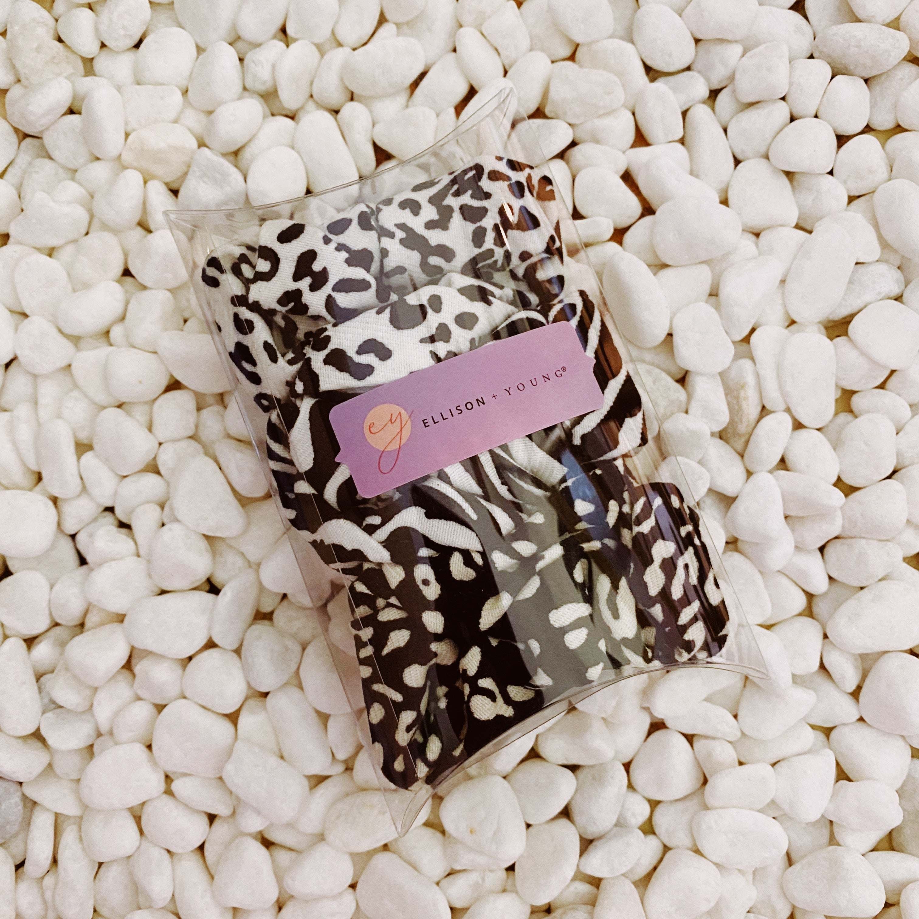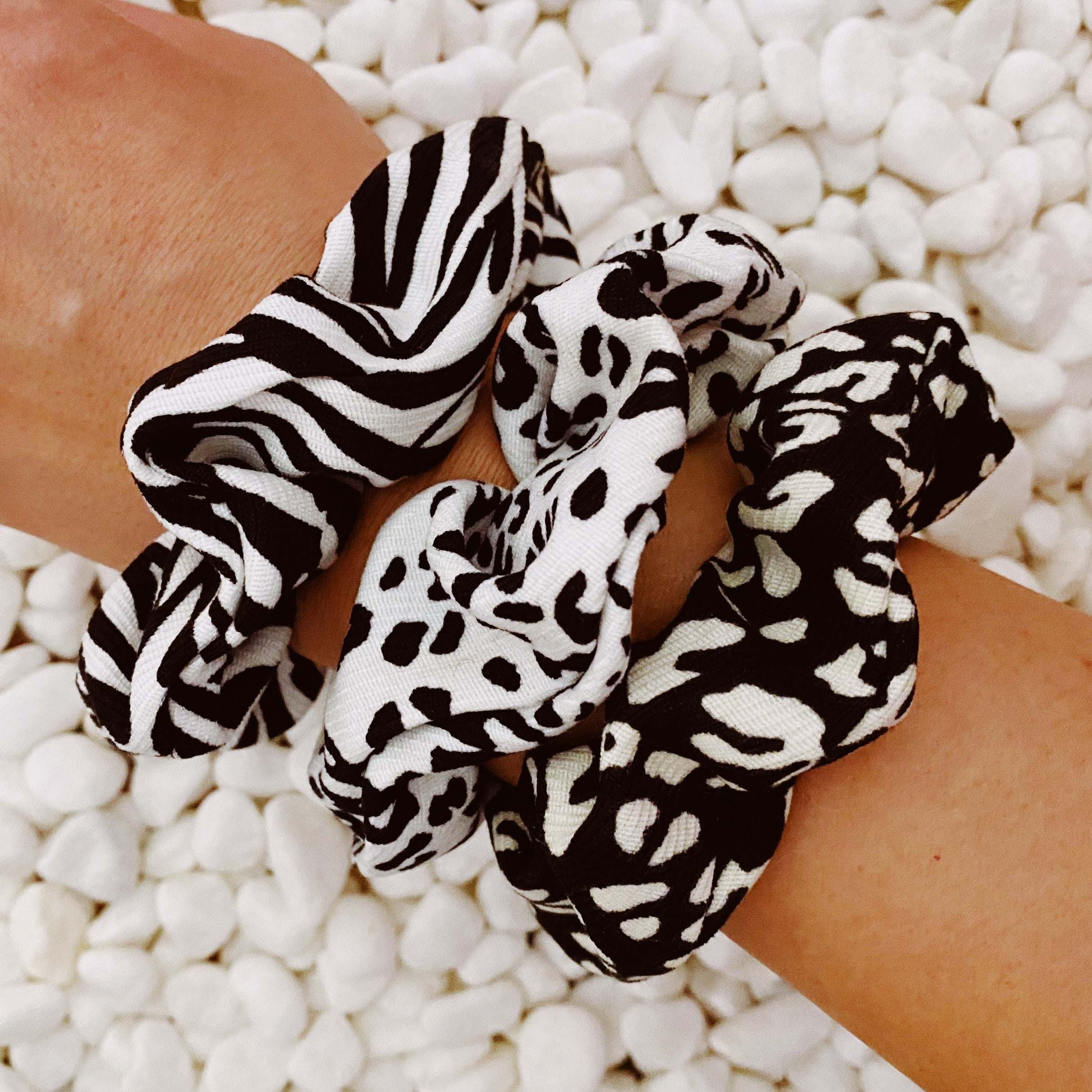 The set features three unique animal prints, nicely blended with black and white. Perfect for adding a subtle touch of wildness to any look, this set is a must-have for fashionistas.